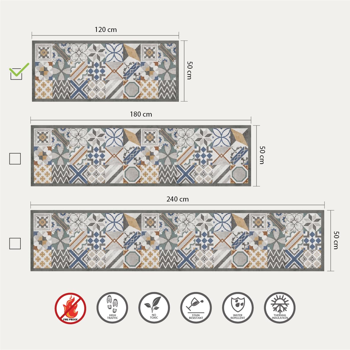Tapis De Cuisine CREARREDA 120x50cm - Vinyle Antidérapant - Lavable - Fabriqué En Italie - Orange